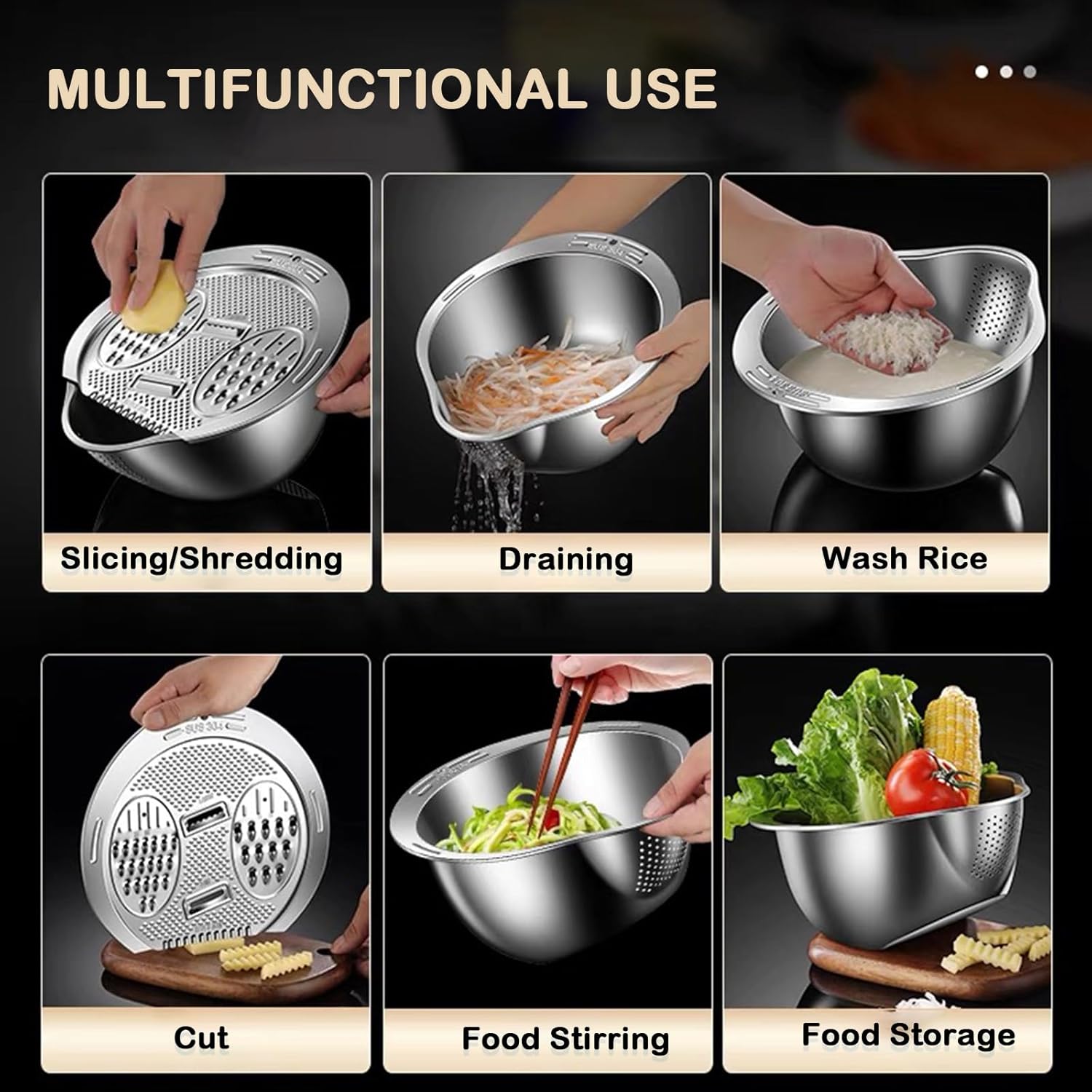 Stainless Steel Rice Washer Strainer with Side Drain – For Quinoa, Fruits, Veggies, Beans